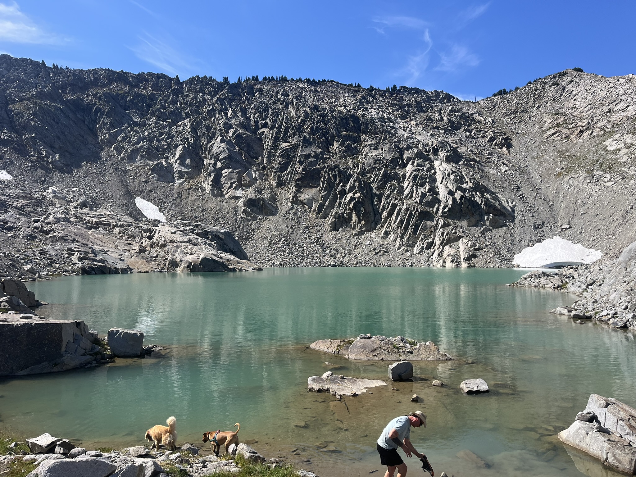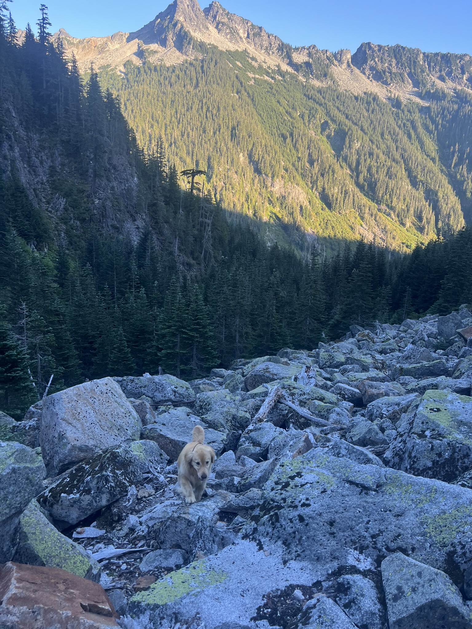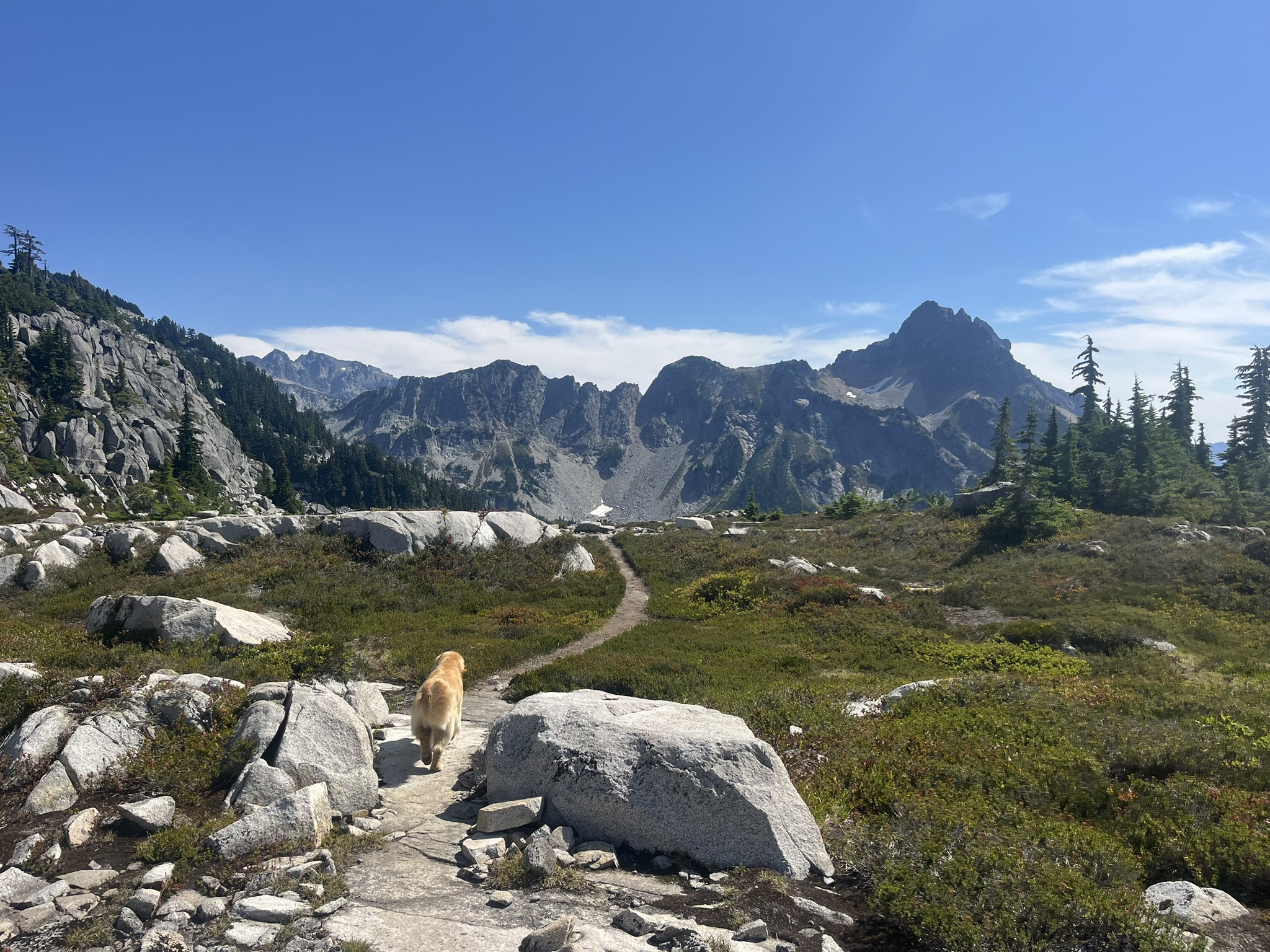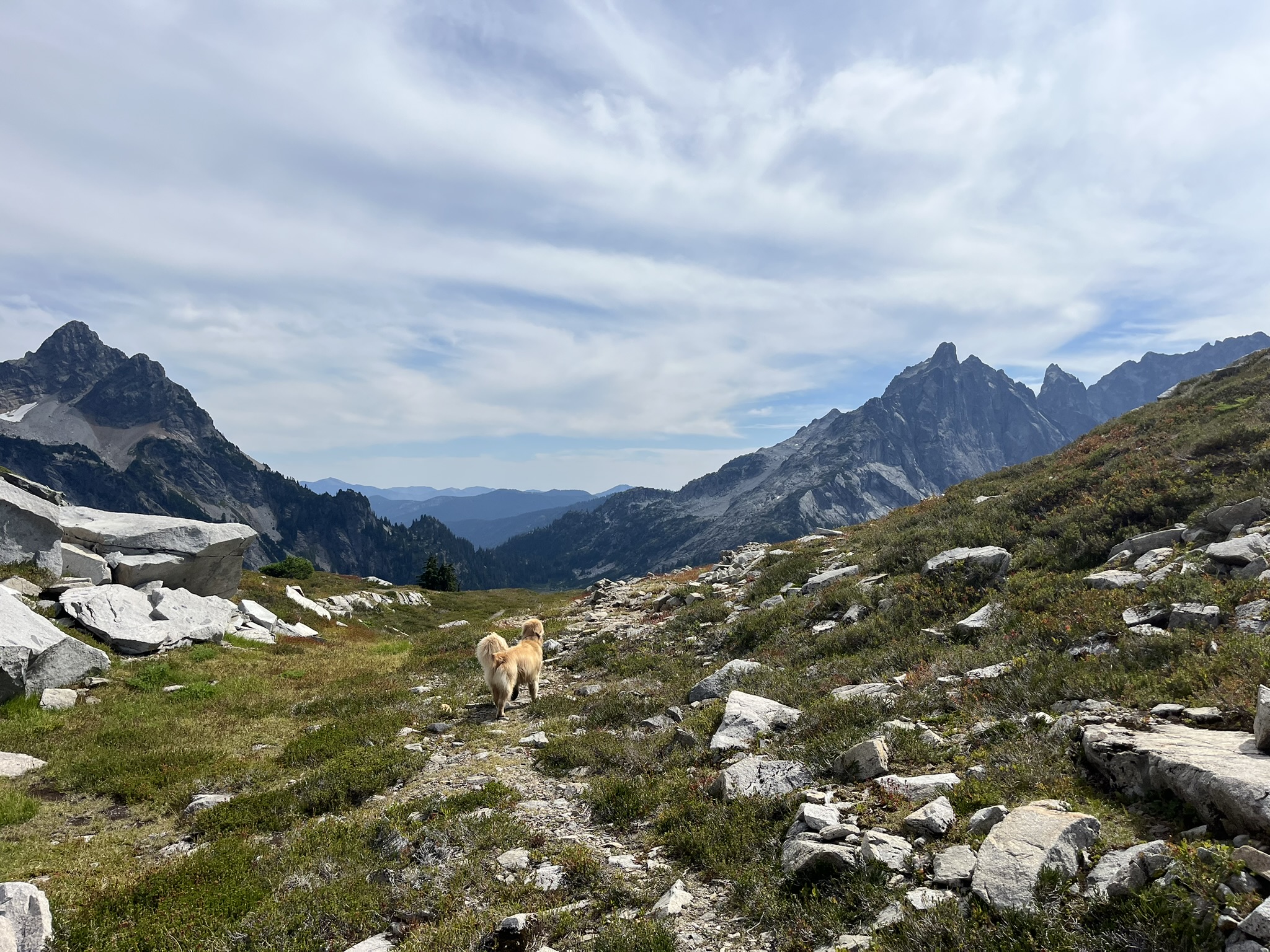 This is one of the great traverses in the Alpine Lakes Wilderness — the kind of route where you don't see another person for hours and every turn reveals another basin, another lake, another wall of granite. I handled the boulder fields, the route-finding, and the long miles the way I handle everything. Professionally. My human drove us home with the windows cracked. I was asleep in the car before we hit the highway.