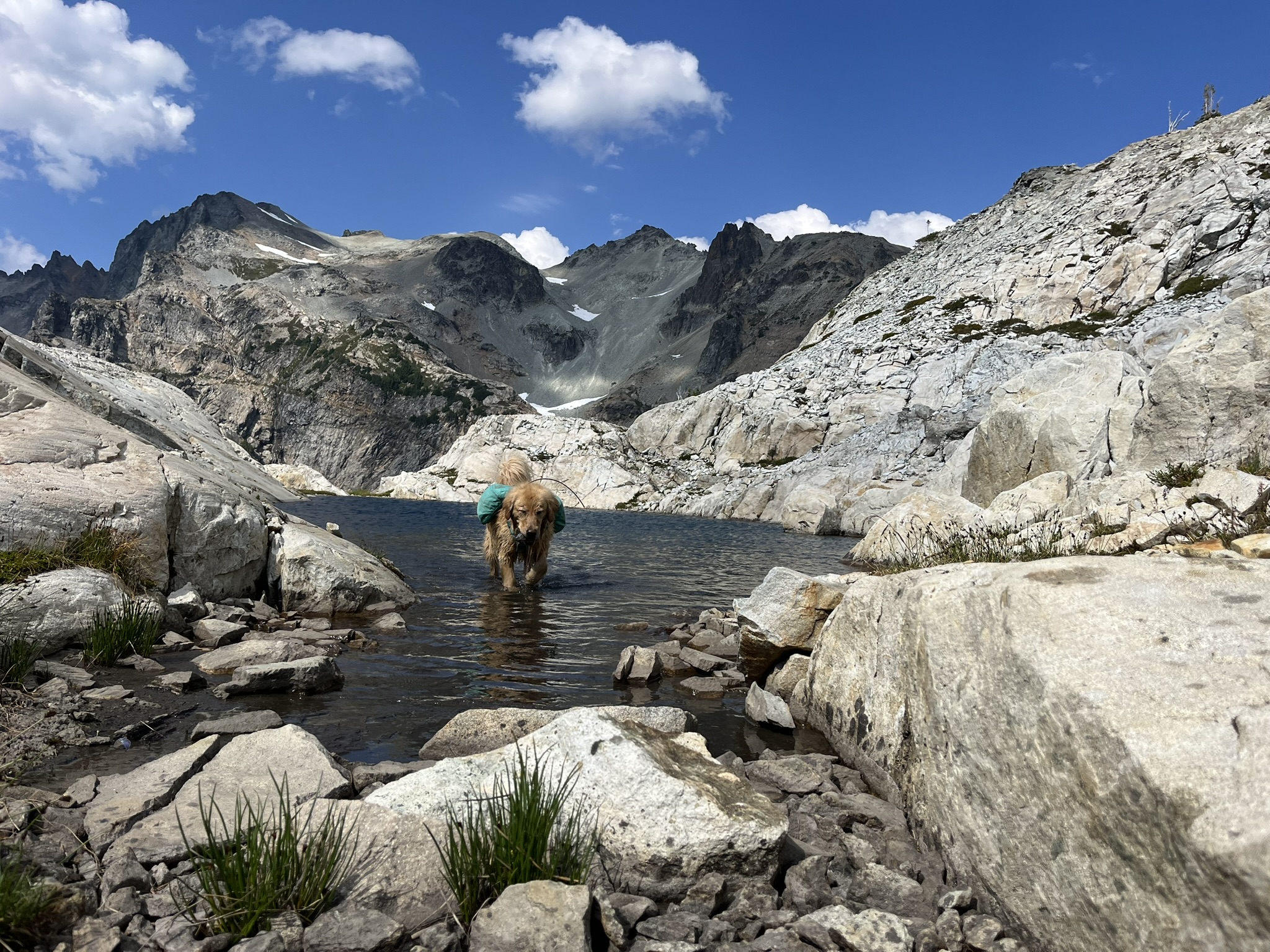 Lower down, I waded into a tarn cupped in granite boulders. Clear. Cold enough to make my chest ache. I stood chest-deep and stared up at the peaks reflected in the water around me. My blue pack was still on. I didn't care. Some moments you just stand in.