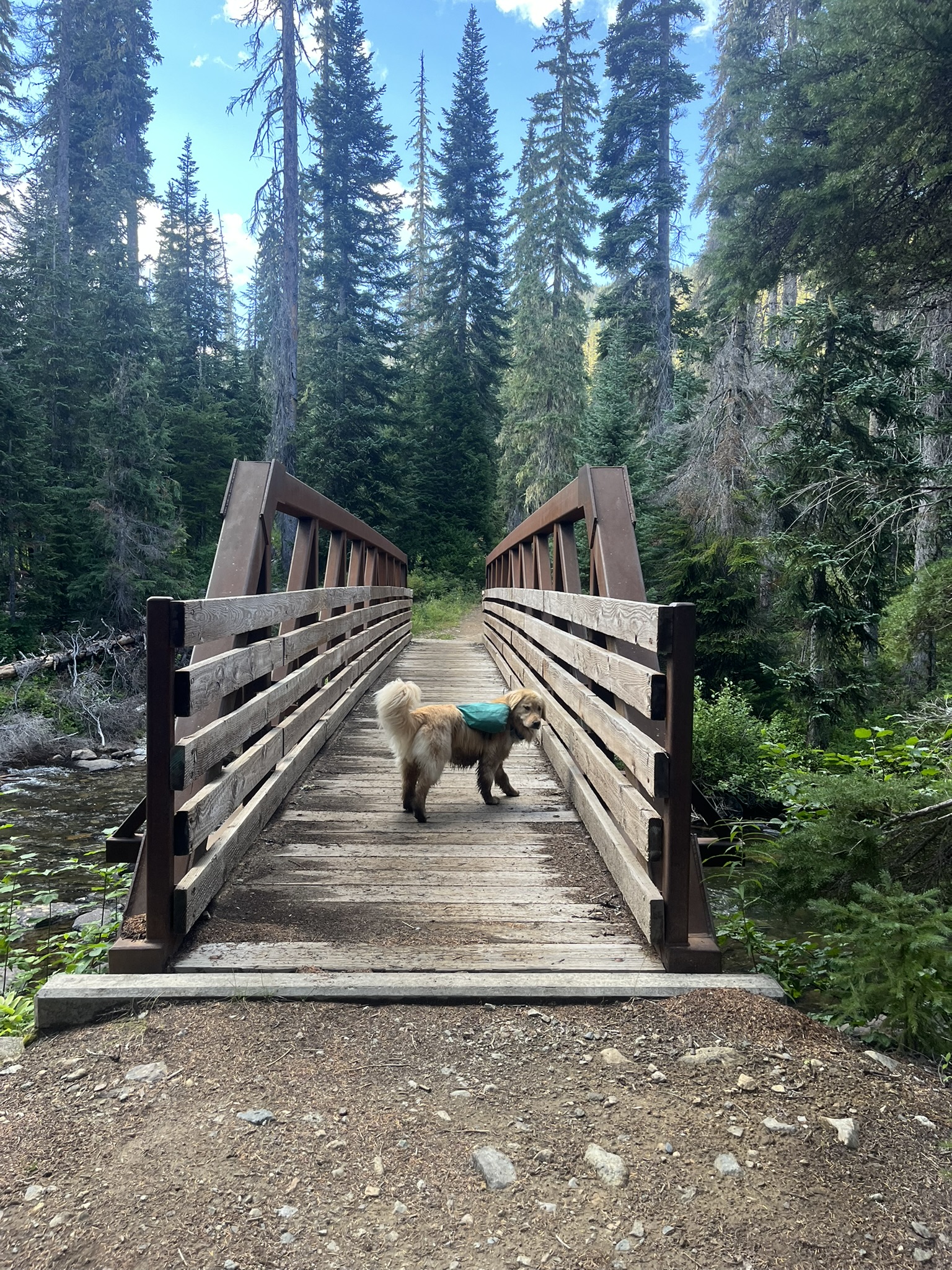 The last mile was flat trail through old forest to a wooden bridge over a creek. I walked across it the way you walk after three days — steady, tired in every muscle, satisfied in every bone. Thirty-two miles. Ninety-five hundred feet of gain. One glacier. One summit. Two lakes I swam in and several more I wanted to. I was asleep before we hit the highway. Obviously.